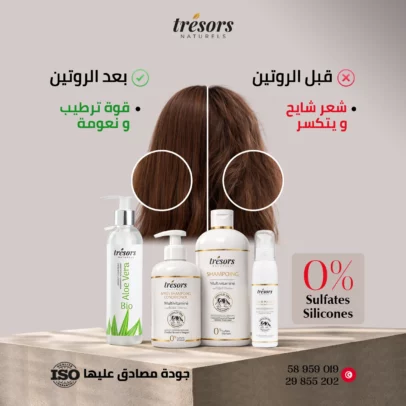 Routine capillaire complète conçue pour les cheveux secs, fragiles, cassants et ternes.