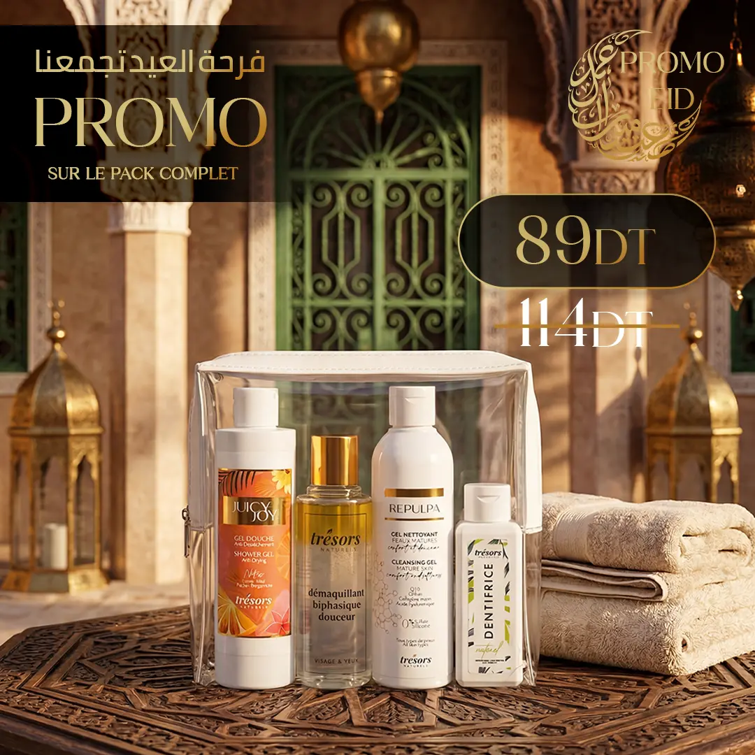 Composé d’un dentifrice purifiant, d’un gel douche fruité, d’un démaquillant doux et d’un gel nettoyant repulpant, ce pack associe des formules enrichies en actifs d’origine naturelle pour nettoyer, apaiser, hydrater et apporter douceur, fraîcheur et confort au quotidien.
