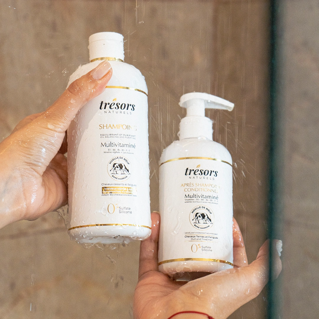 Cette synergie de soins associe des actifs nourrissants et revitalisants pour hydrater, renforcer la fibre capillaire, limiter la casse et améliorer visiblement la qualité des cheveux dès les premières applications.