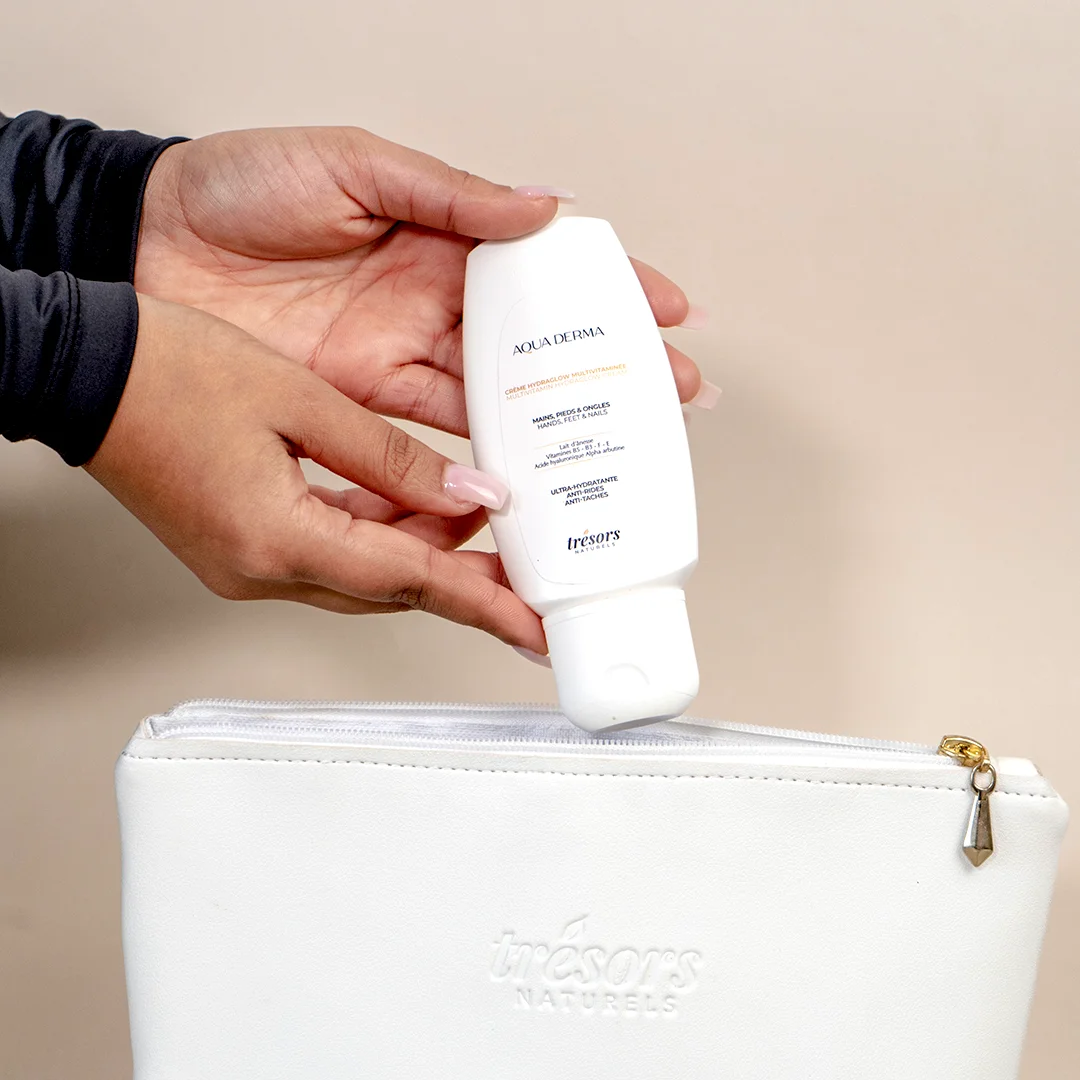 Le trio AQUA DERMA associe un gel nettoyant doux, un soin hydratant intense et une crème réparatrice pour une peau souple, confortable et lumineuse.